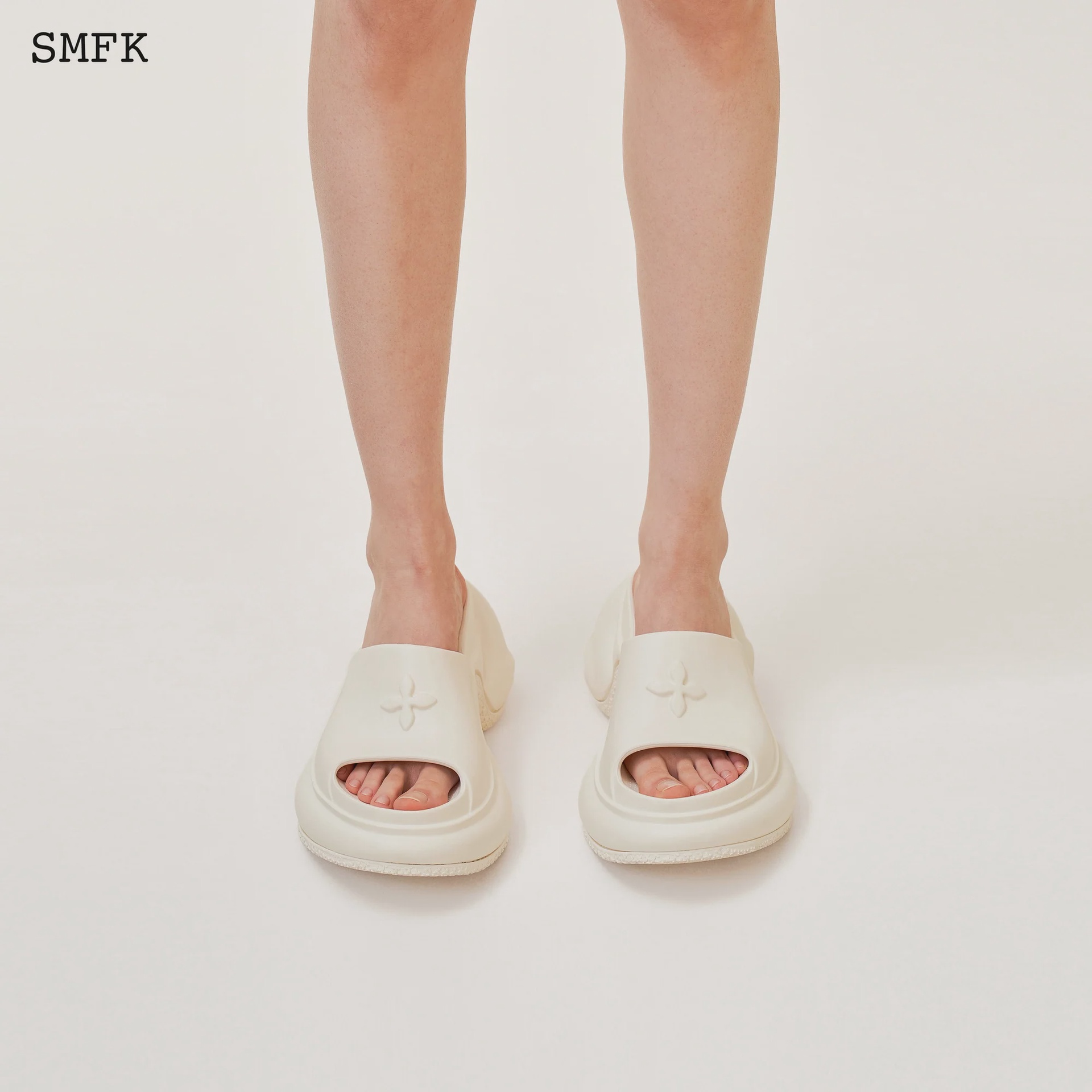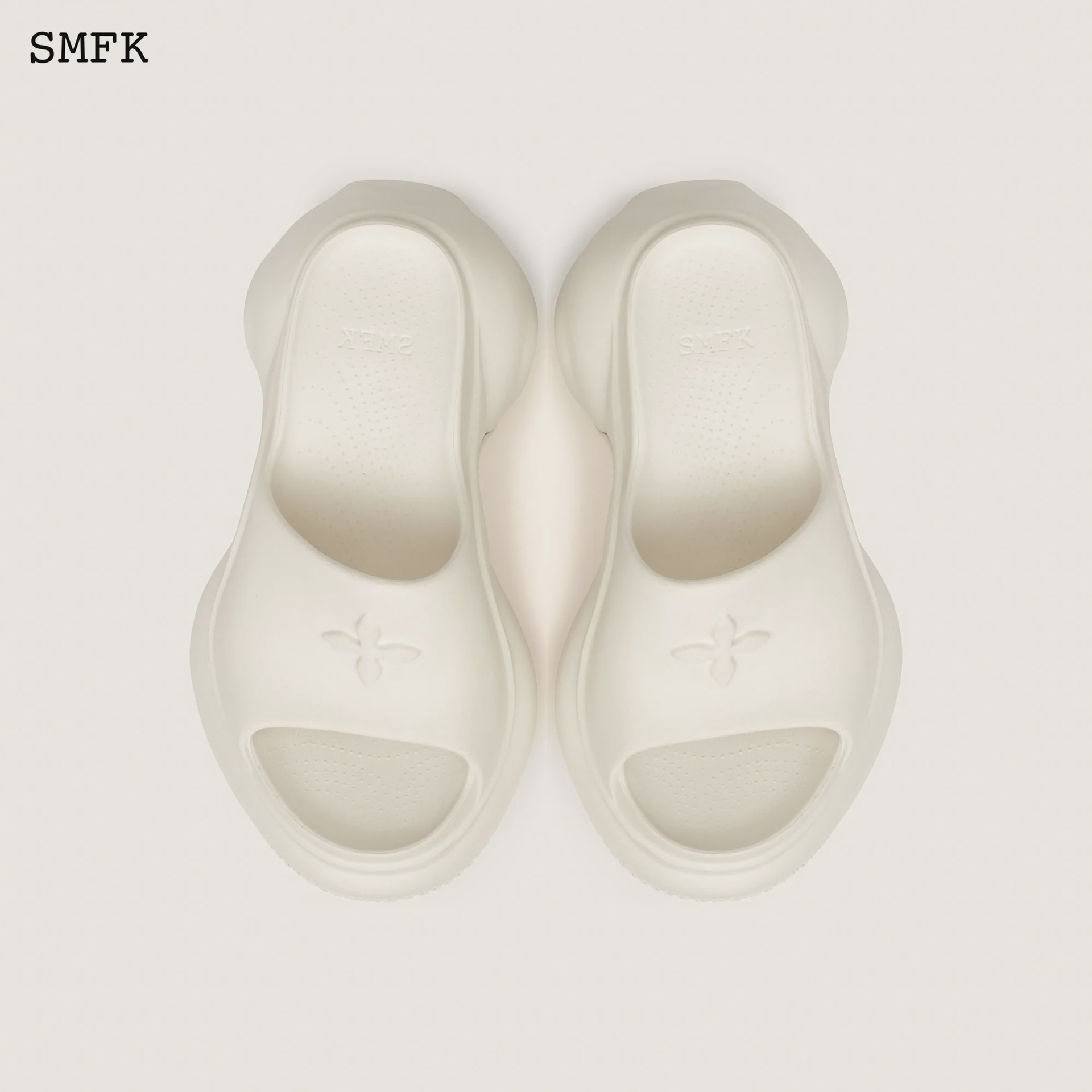 The shape and structure follow the genes of SMFK’s first pair of Bumper slippers. The three parts correspond to the three material properties. The softness and comfort of the shoe body + the toughness of the shoe core + the wear resistance and friction of the sole.