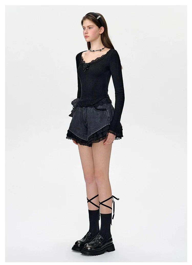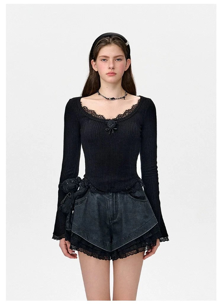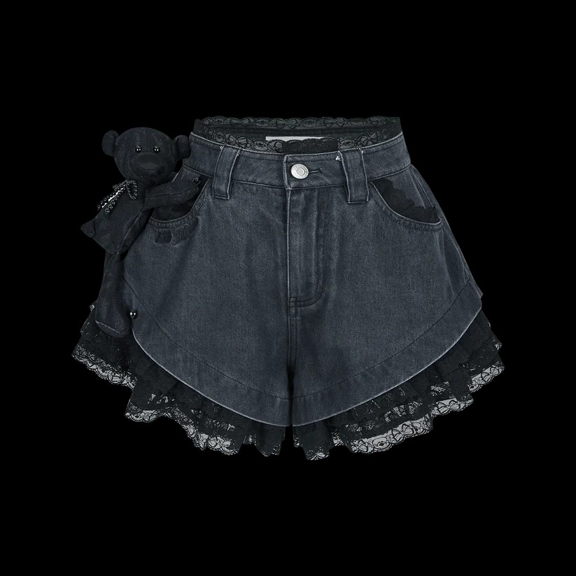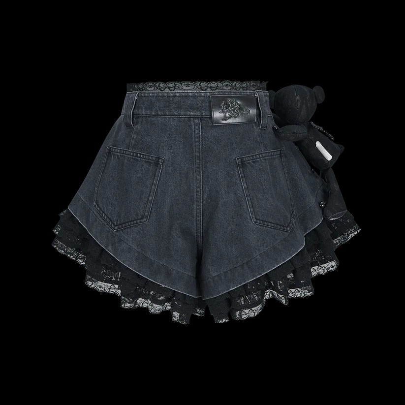 13DE MARZO 蕾丝系列小熊蕾丝牛仔短裤