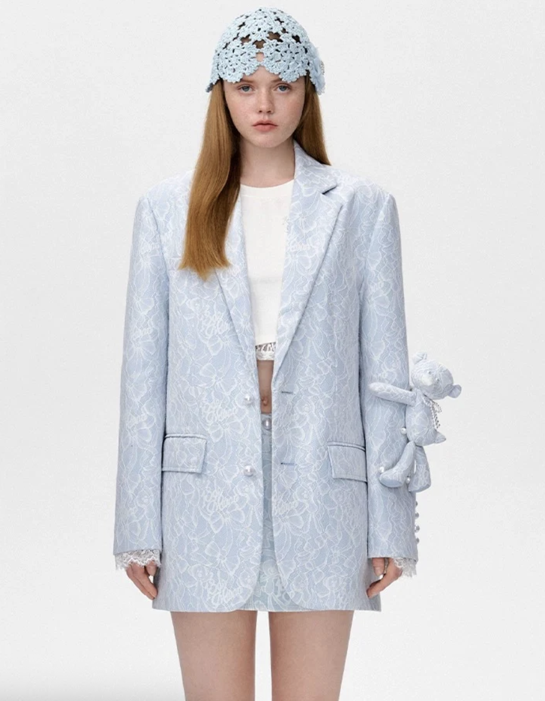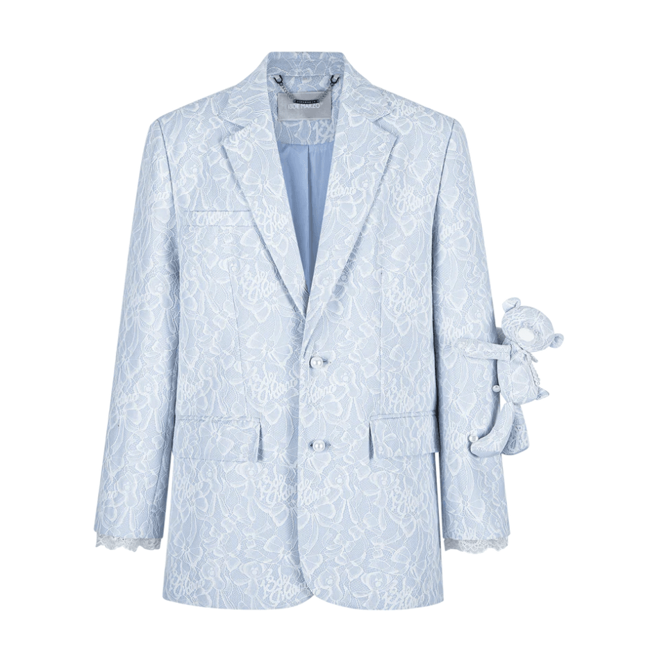 13DE MARZO 蕾丝系列玩偶镂空蕾丝西装外套蓝色