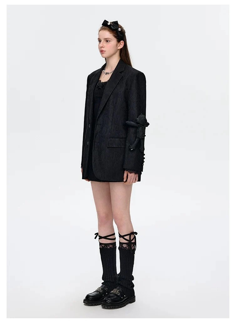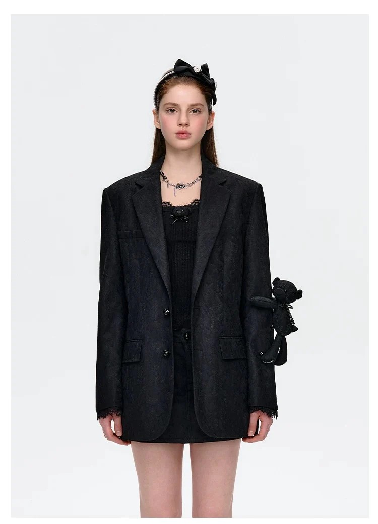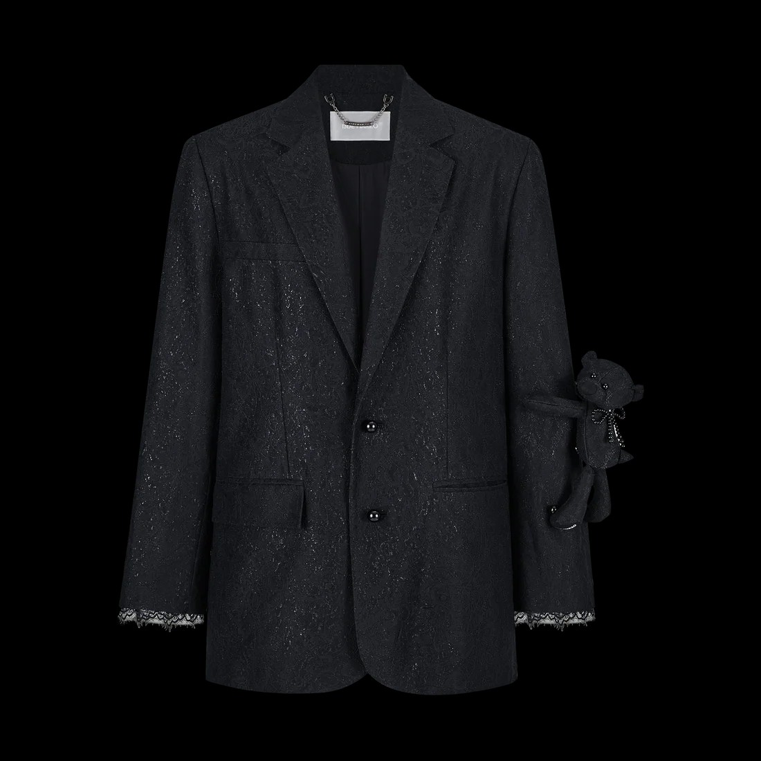 13DE MARZO 蕾丝系列玩偶镂空蕾丝西装外套黑色