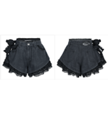 13DE MARZO Lace Series Bear Lace Denim Shorts 蕾丝系列小熊蕾丝牛仔短裤