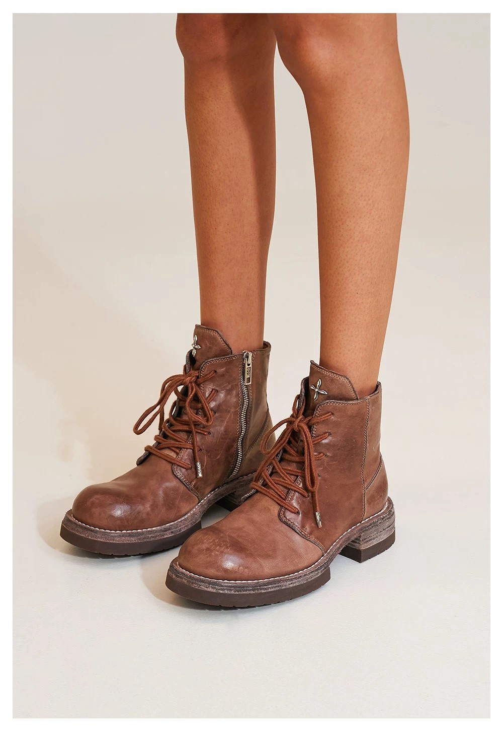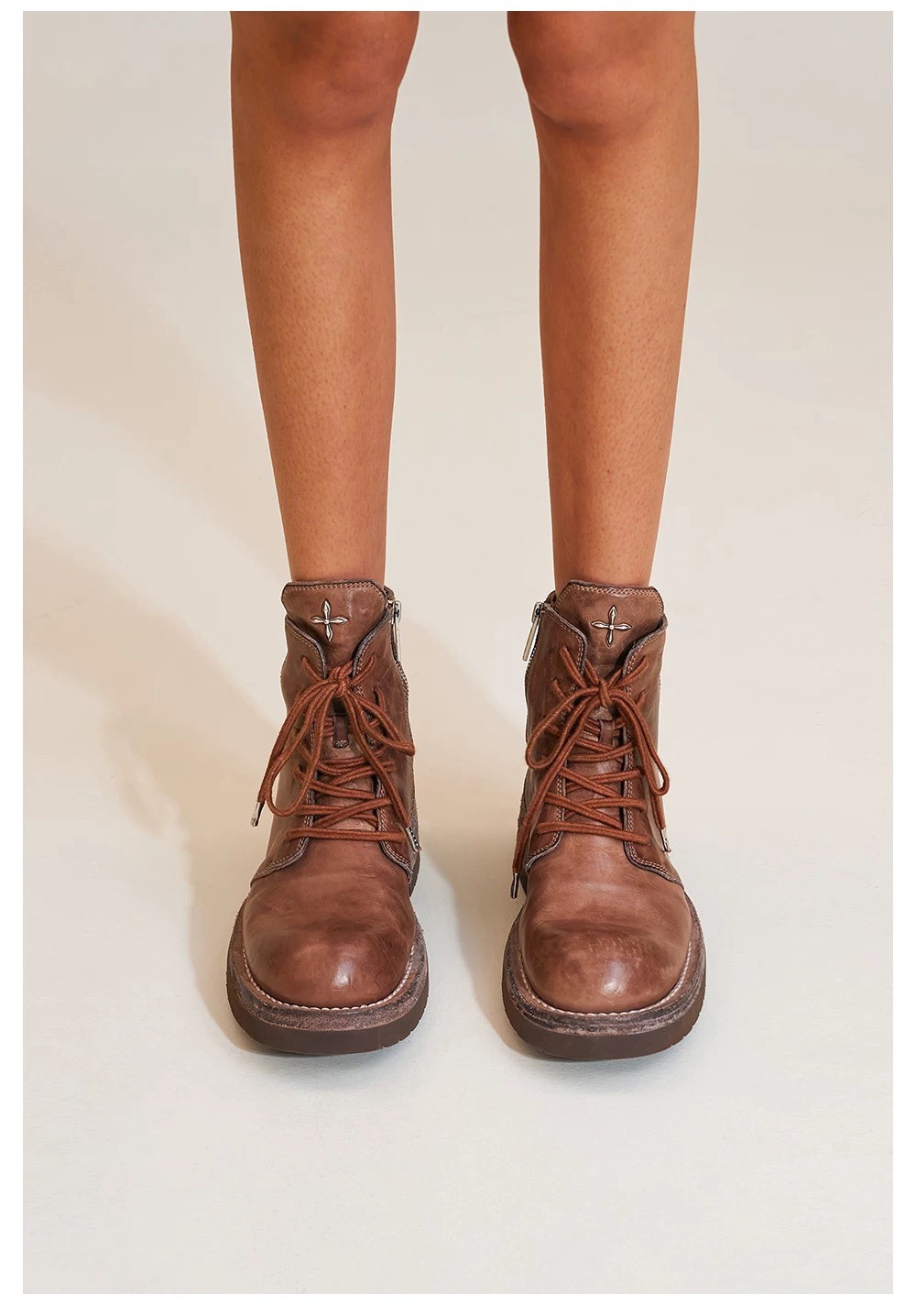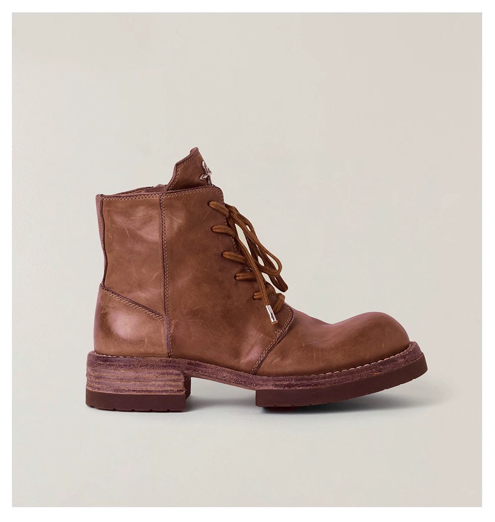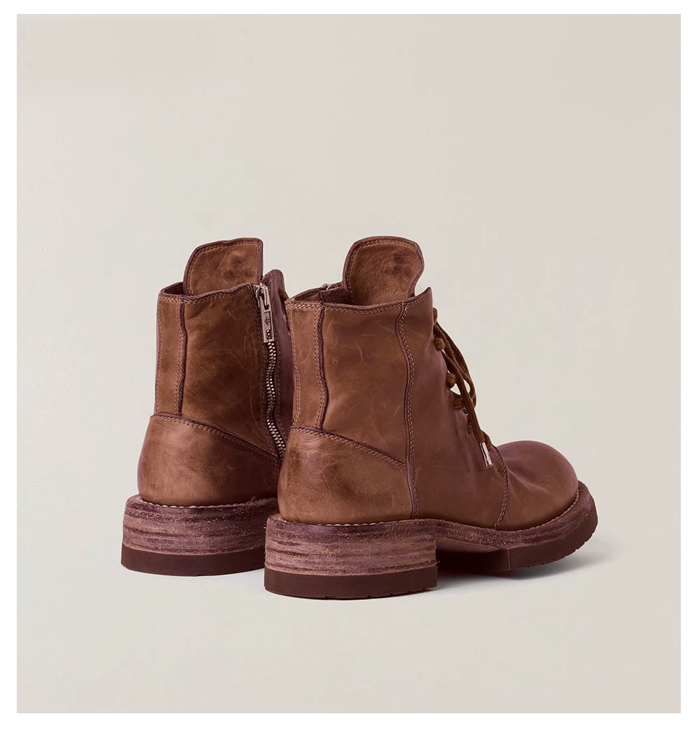 SMFK Wild Origin Handcrafted Goodyear-welted Horsehide Motorcycle Boots Workwear-inspired Casual Lace-up Short Boots for Women 野性起源手工固特异马皮机车靴工装休闲系带短靴女鞋
