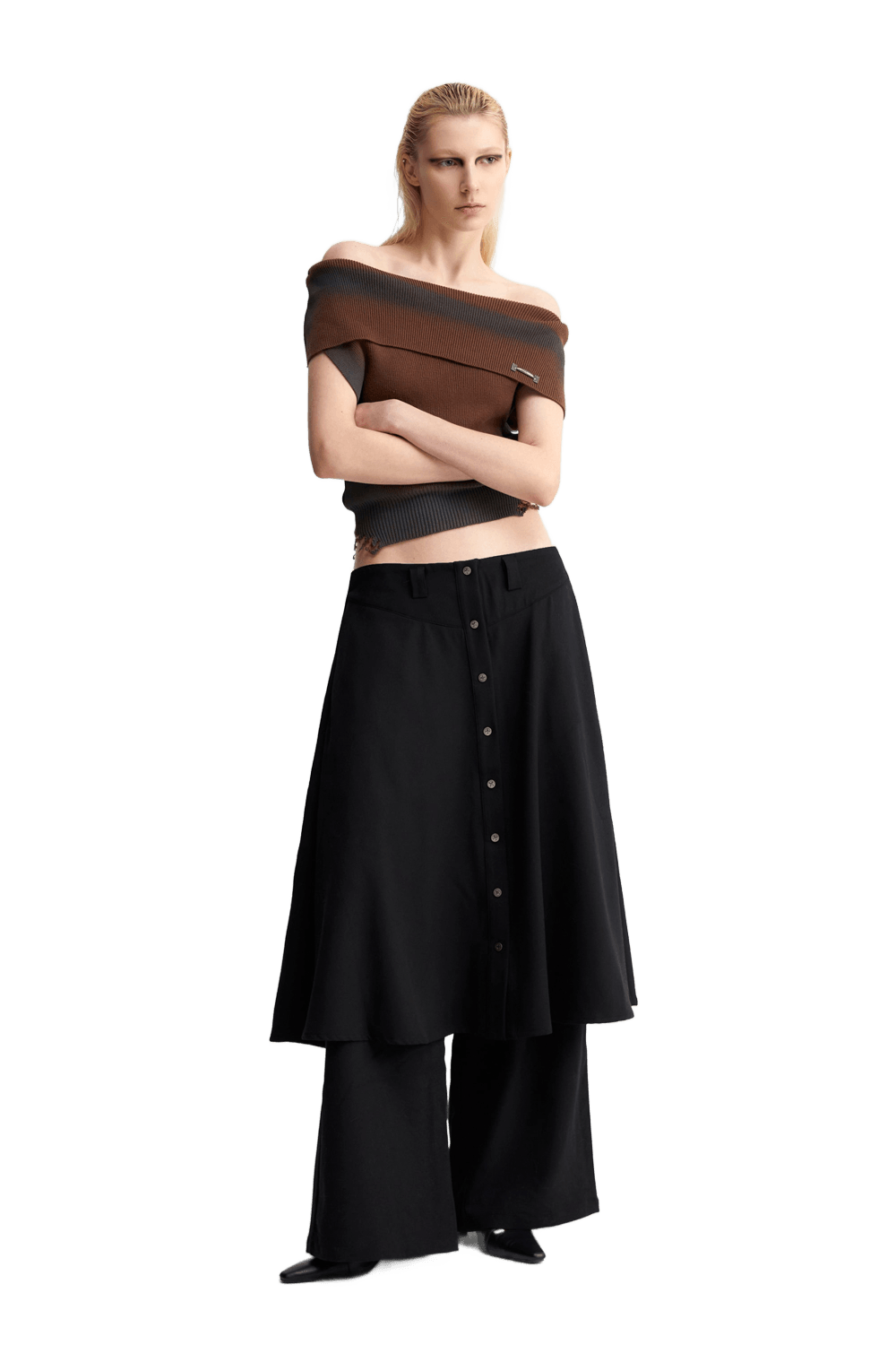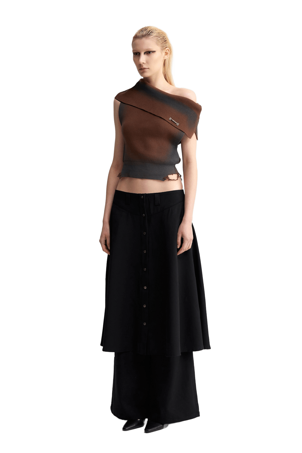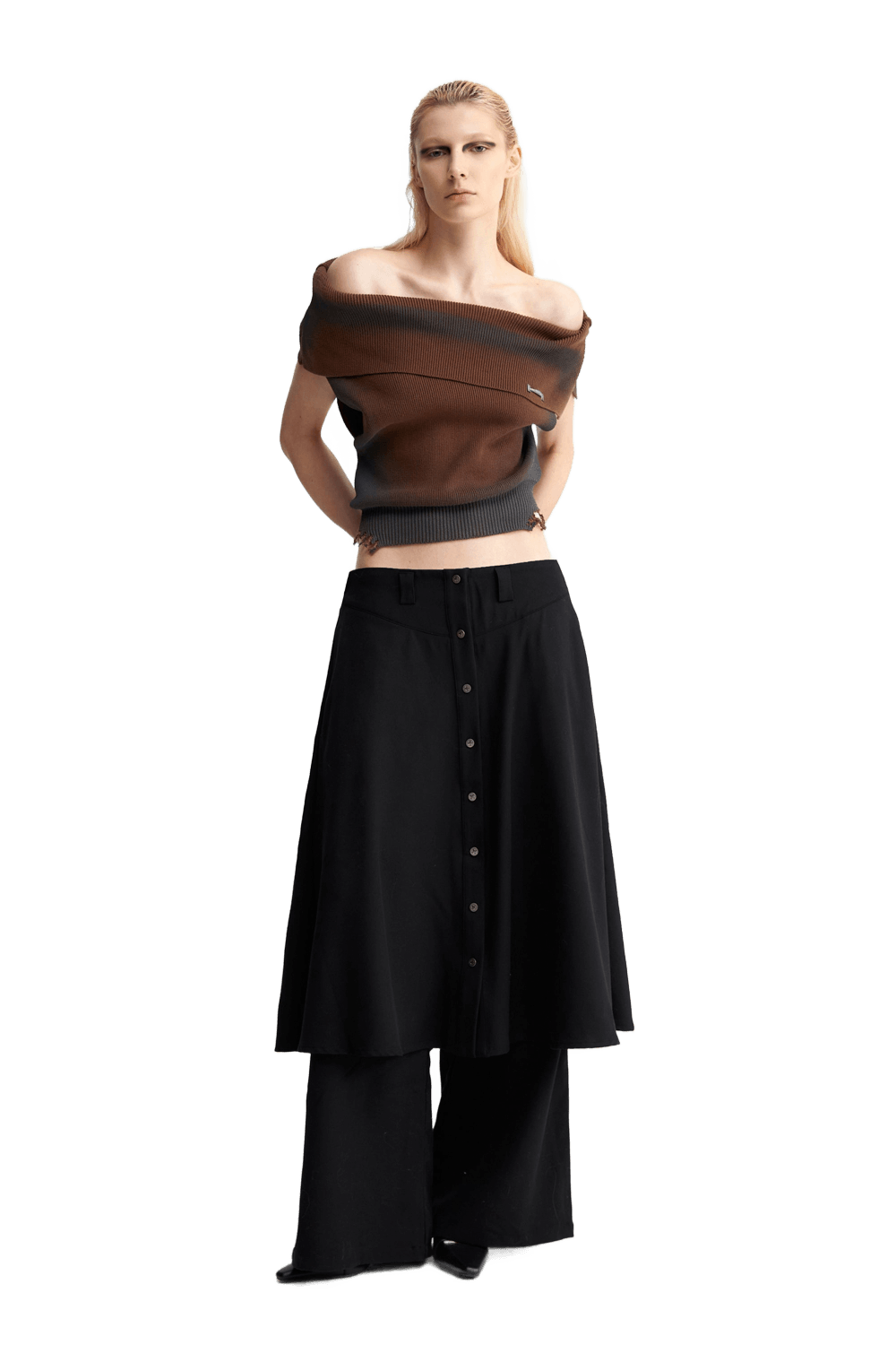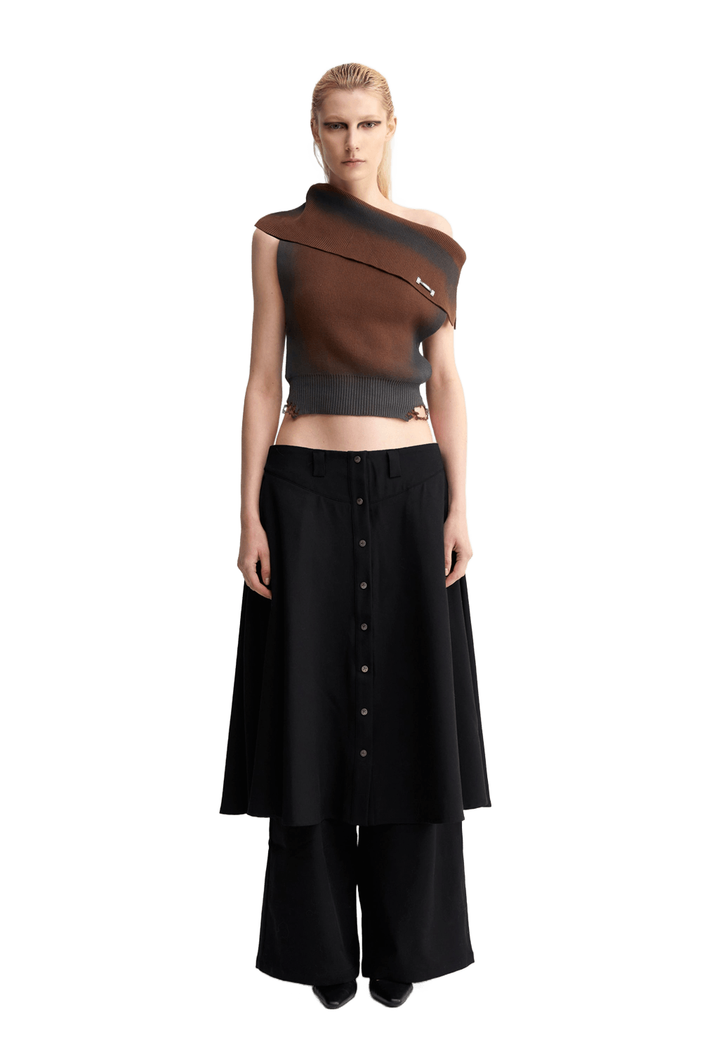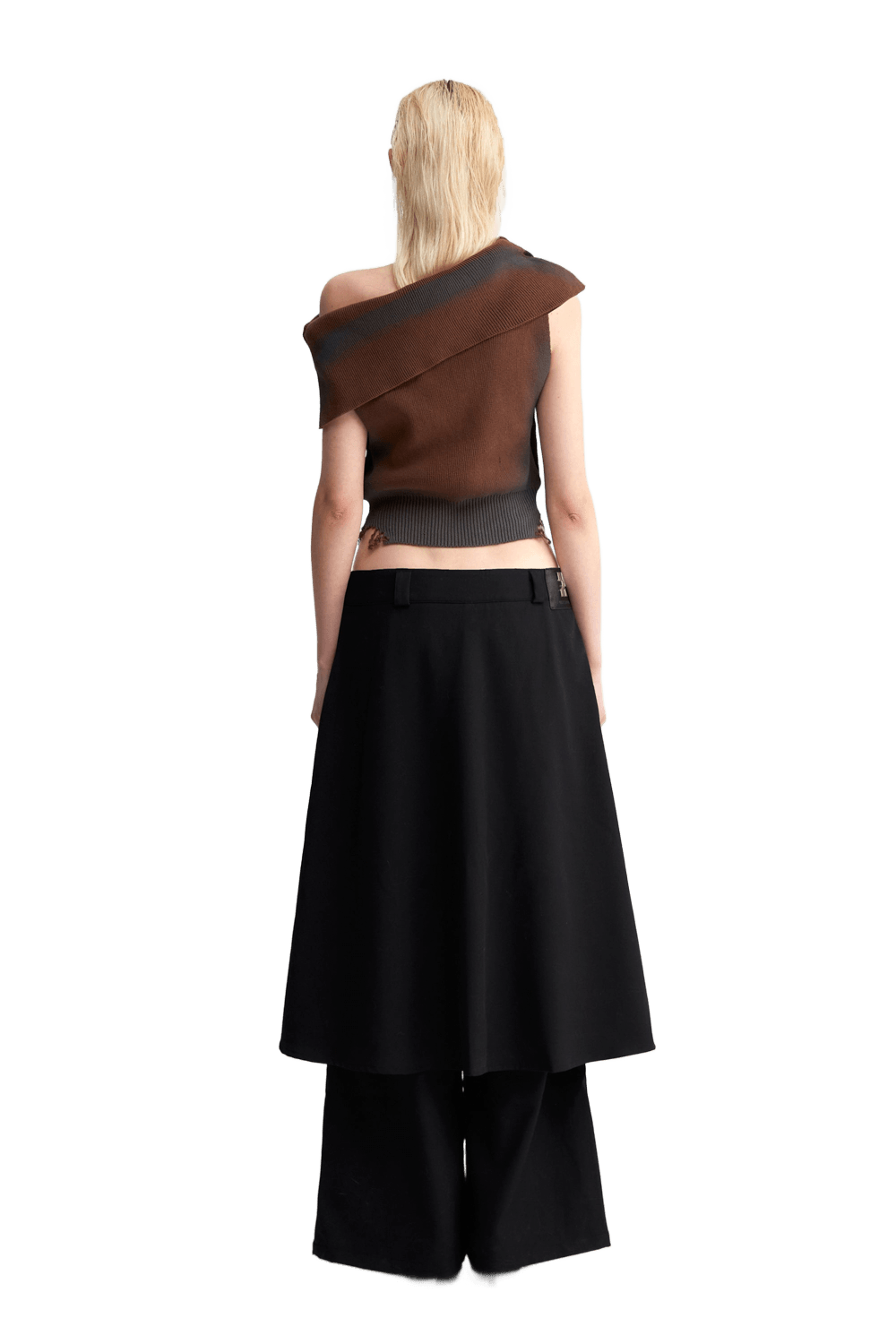 YJ1NGZYZJ ONE SHOULDER KNIT TOP IN BROWN and Skirt layered suit pants